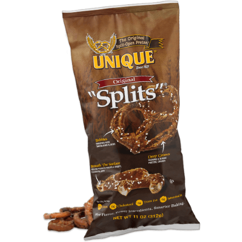 10 oz. Unique Original Pretzel Splits. The Spannuth Family has been baking pretzels for six generations dating back to the late 1800’s. The original split-open pretzels using simple ingredients and a slow bake process. Deep crevices and hollow pockets which maximize the pretzel’s flavor and crunch.