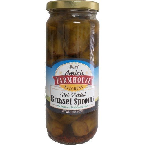 16 oz. Pickled Hot Brussel Sprouts bottled by Amish Farmhouse Kitchens. Our very best recipes prepared especially for you.