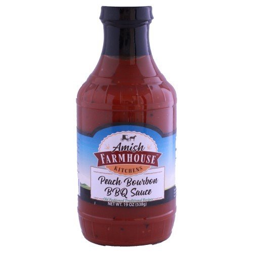 19 oz. Peach Bourbon BBQ Sauce bottled by Amish Farmhouse Kitchens. Our very best recipes prepared especially for you.