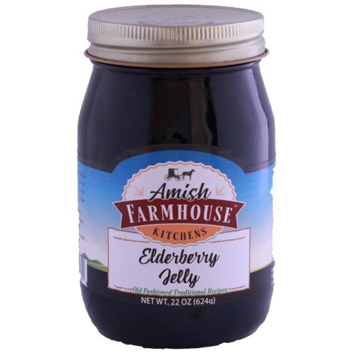 You owe it to yourself to try the old-fashioned taste of Amish Farmhouse Kitchens Elderberry Jelly (18 oz.) that is “Just Naturally Good.” It is 100% all-natural with no artificial colors or sweeteners. The delicious flavor floats out of the jar! Elderberry Jelly (20 oz.) Ingredients: Sugar elderberry juice from concentrate water pectin citric acid. Produced by equipment handling nuts.